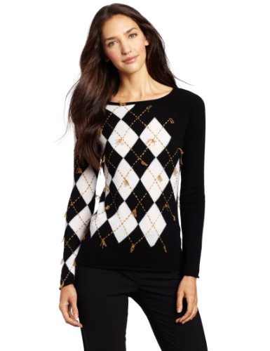 Minnie Rose Women's Long Sleeve Argyle Pullover